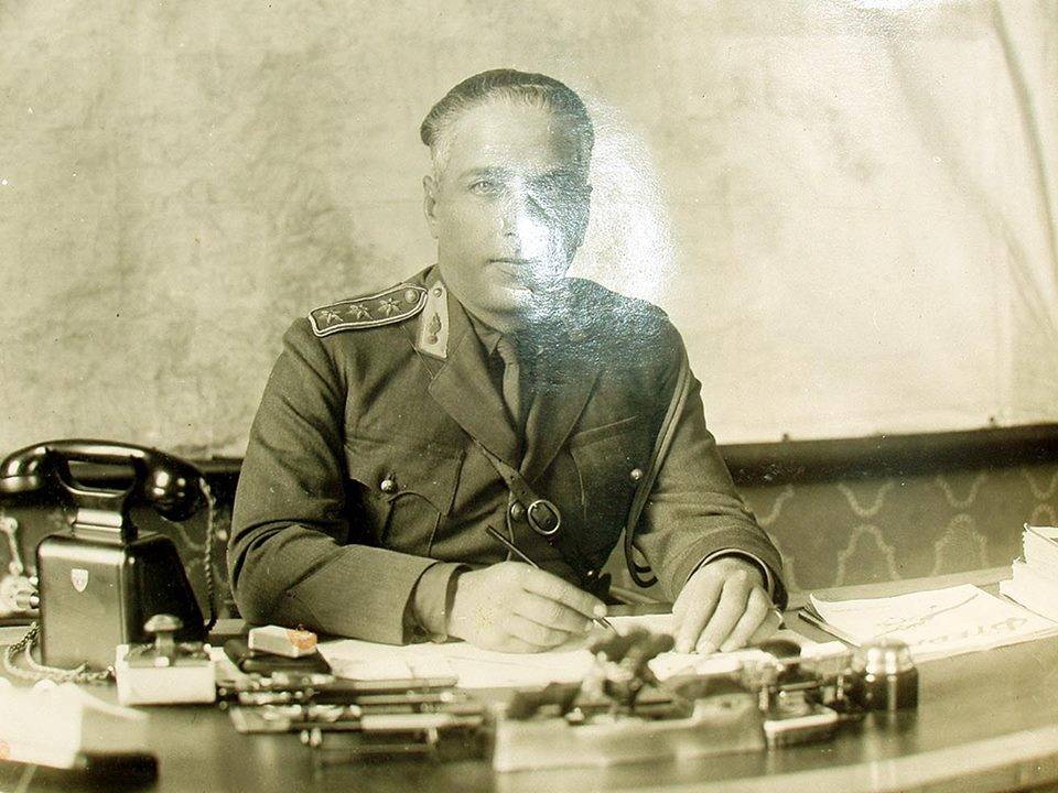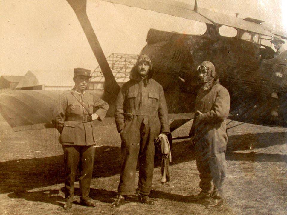 ο στρατηγός Αδαμίδης ο οποίος πέταξε το γύρο της Μεσογείου με το Αεροσκάφος BREGUET -19 (το πρώτο με ξύλινη επικάλυψη). Δίπλα του ο Θ. Κέρτσος αντισυνταγματάρχης.