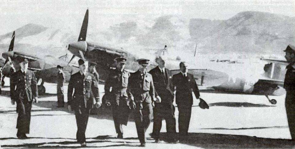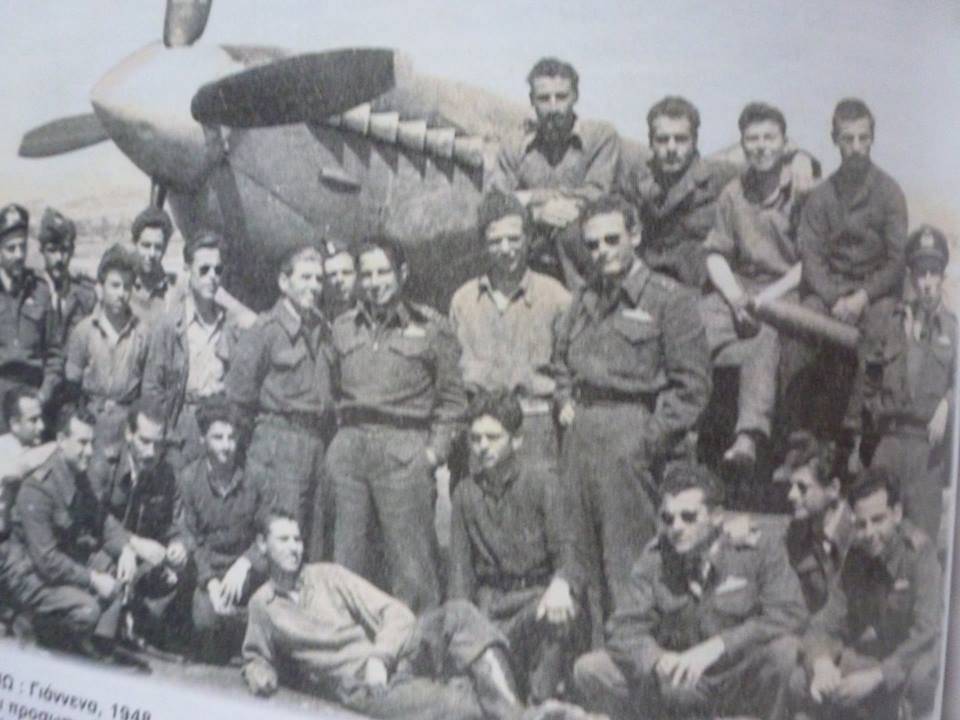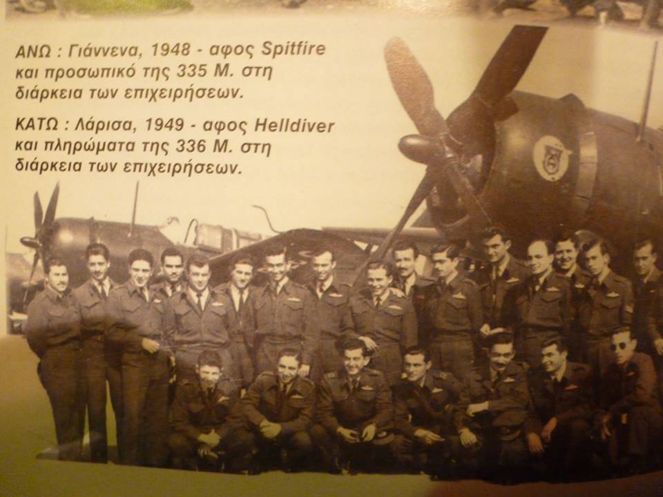 Κλιμάκιο από χειριστές και μηχανικούς μπροστά σ’ ένα Spitfire της 335 Μοίρας στο α/δ ΙΩΑΝΝΙΝΩΝ το 1948. ΛΑΡΙΣΑ Πληρώματα της 336 Μοίρας μπροστά από ένα HELLDIVER στις επιχειρήσεις του 1949.
