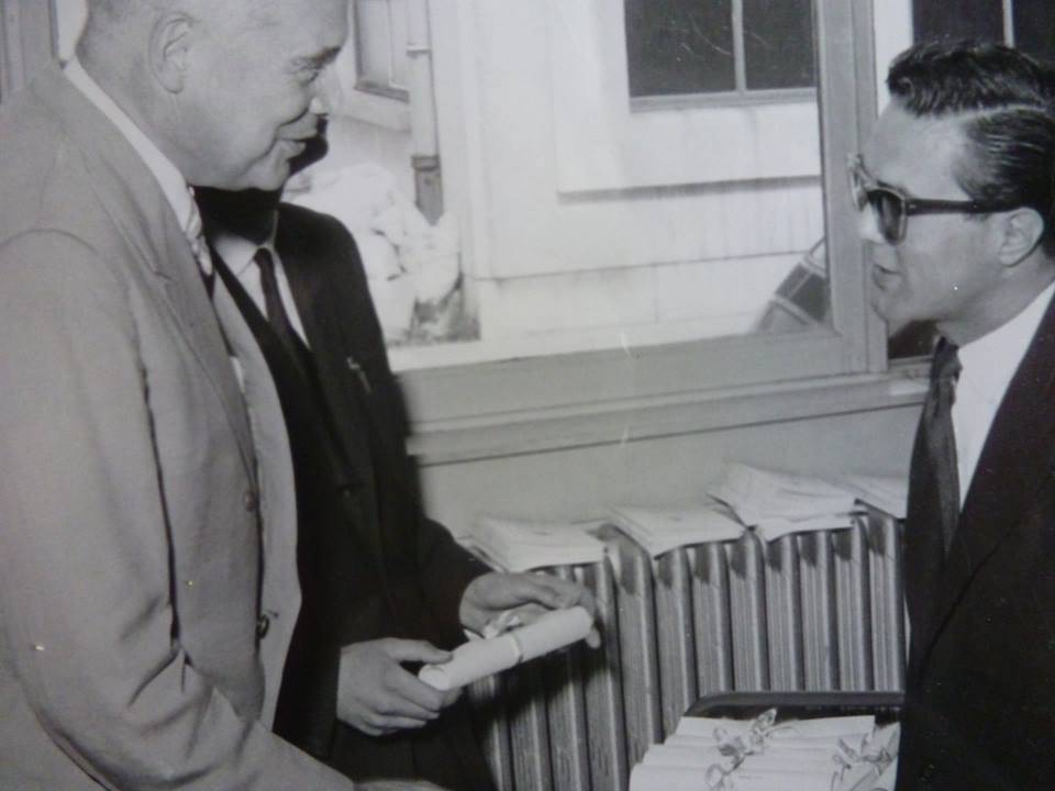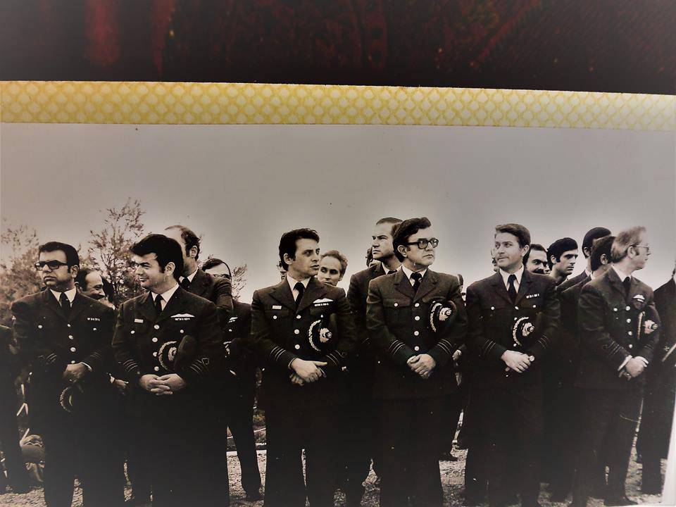Ο Διοικητής ΔΑΥ Υποπτέραρχος Π. Θωμόπουλος και η αφεντιά μου. Προσέξτε το “σοβαρό’ ύφος των παρισταμένων και το δικό μου χαζοχαρούμενο γέλιο.