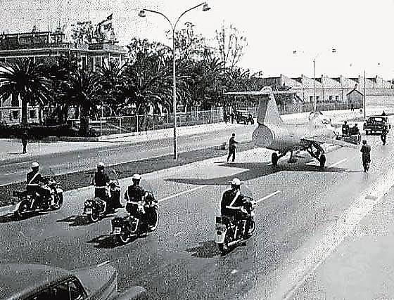 Ετος 1964 το πρώτο αεροσκάφος F 104G (που ξεφορτώθηκε από το παροπλισμένο Αμερικανικό αεροπλανοφόρο στον όρμο Φαλήρου) ρυμουλκείται στη λεωφόρο Ποσειδώνος συνοδεία αστυνομικών προς το παράρτημα 202 ΚΕΑ ΕΛΛΗΝΙΚΟΥ.