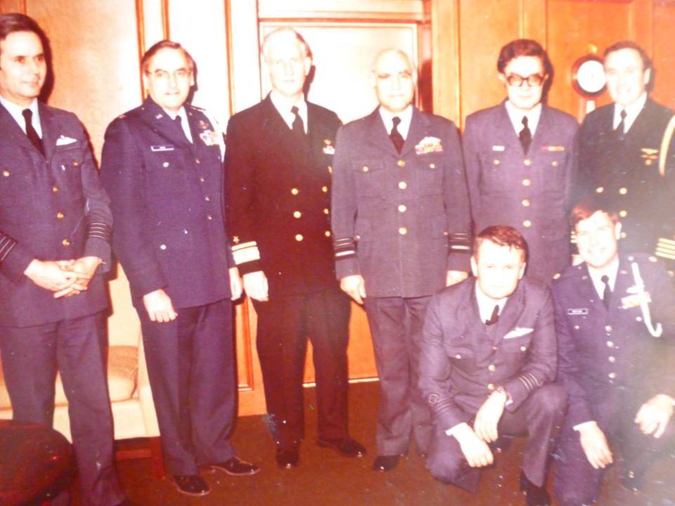 1980 ΓΕΑ, Αρχηγός Δ. Παπαγεωργίου, Σχος Ν. Στάπας μετέπειτα αρχηγός ΓΕΑ, η αφεντιά μου κλπ Δεξιά αποστρατεία μου ως κλαδάρχη Γ’ κλάδου ΓΕΑ.