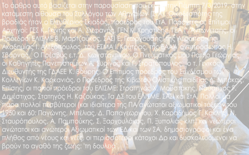 Η κουλτούρα και η παιδεία των Ελλήνων πρέπει να αλλάξει! και, έτσι, στο ερώτημα Ποιοί φταίνε; δεν πρέπει η πιο δημοφιλής απάντηση να είναι ‘οι μπάσταρδοι οι ξένοι!’ αλλά ΄Εμείς και μόνο Εμείς!’