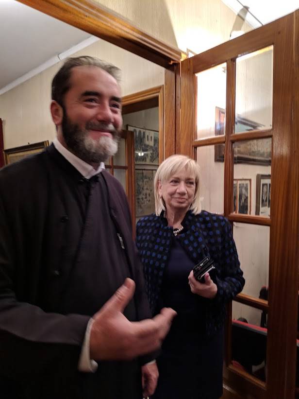 Η οικοδέσποινα της βραδιάς μαζί με τους ναυάρχους του ΛΣ (εα), Νικόλαο Σπανάκο και Νικόλαο Δενιόζο (και συντονιστή της βραδιάς, συνομιλούν: