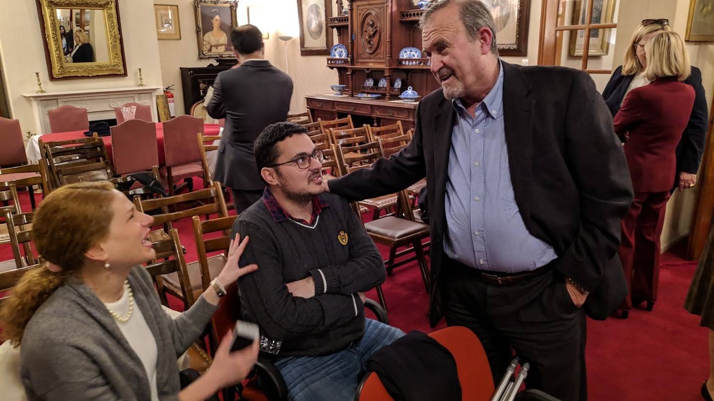 ‘Ο εικονολήπτης της βραδιάς στρατηγός εα (και φίλος), συμβουλεύει νεαρό ζευγάρι αναλυτών αρθρογράφων: Εφη Χαραλαμπάκη και Γιώργος Λυκοκάπης.’
