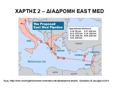 Ένας τρίτος λόγος είναι δημιουργία αισθήματος ανασφαλείας στους επενδυτές του έργου, εκτός και αν η Τουρκία συμμετέχει σ’ αυτό. Η κατασκευή κάθε αγωγού προϋποθέτει σοβαρές επενδύσεις. Οι δε επενδυτές εξετάζουν πρώτα από όλα το ζήτημα της φυσικής ασφαλείας μιας τέτοιας επενδύσεως. Και όπως φαίνεται στους Χάρτες 1 και 2, η διαδρομή του East Med διέρχεται από την περιοχή στην οποία η Τουρκία θεωρεί ότι έχει κυριαρχικά δικαιώματα, κάτι που δεν μπορεί να δεχθεί η Ελλάδα. Το κλίμα αυτό δημιουργεί δεύτερες σκέψεις για οποιεσδήποτε επενδύσεις, πόσον μάλλον για μια επένδυση ύψους 6-8 δις $ και για ένα έργο που θα είναι σε εξέλιξη μέχρι το 2025.