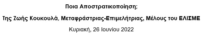 Της Ζωής Κουκουλά, Μεταφράστριας-Επιμελήτριας, Μέλους του ΕΛΙΣΜΕ