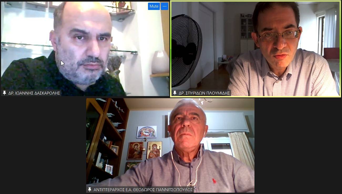 Με τους Κηθηγητές του Παντείου Πανεπιστημίου Δημήτριο Τριανταφύλλου και Κωστή Υφαντή και συντονιστή τον Πρέσβη ε.τ. Δημήτριο Ηλιόπουλο