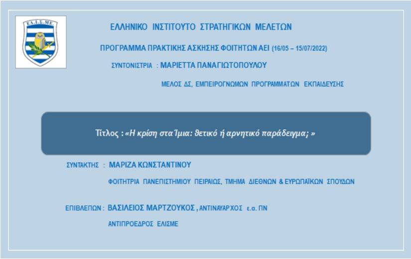 Της Βασιλικής Έλλης Ζέρβα, Φοιτήτριας Πανεπιστημίου Πειραιώς
