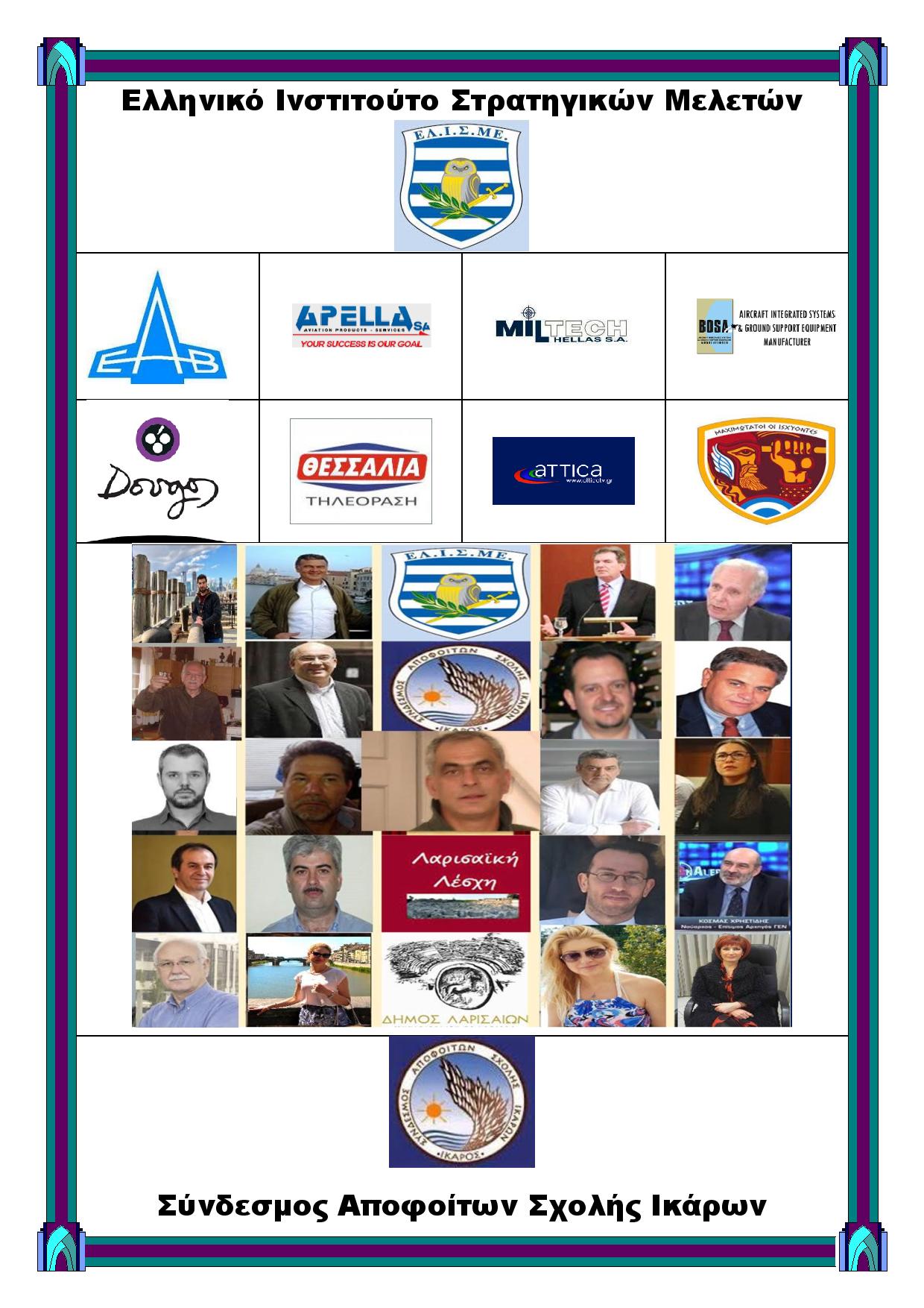 Δώσαμε έμφαση στους θεματικούς άξονες: -Η Εθνική μας Αμυνα & Ασφάλεια στο Πλαίσιο των Περιοχικών Εξελίξεων Ολες οι εισηγήσεις άρχιζαν με το γράμμα Α -ΑΡΙΣΤΕΣ-! Η μια καλύτερη από την άλλη από όπου και αν αρχίστε τον κύκλο! Φέραμε κοντά: (1) την θεσμική, ακαδημαϊκή, στρατιωτική, τοπική ηγεσία και την αγορά, και, (2) μια πλειάδα έγκριτων καθηγητών, διακεκριμένων και εξειδικευμένων αξιωματικών των ΕΔ, διδακτόρων, αναλυτών και έμπειρων μεγάλων στελεχών της Βιομηχανίας και της Οικονομίας, οι οποίοι θα παρουσιάσουν/ απαντήσουν/ συζητήσουν γύρω από τους παραπάνω θεματικούς άξονες , με : τα Στελέχη του Ιδιωτικού και Δημόσιου Τομέα, τα Στελέχη των ΕΔ/ΣΑ, αλλά και φοιτητές και σπουδαστές, καθώς και κάθε ενεργό πολίτη. Την παραμονή της ημερίδας έγινε μια δεξίωση γνωριμίας των εισηγητών, συντονιστριών, χορηγών και των πολιτικών αρχών της Λάρισας, στη θαυμάσια και ιστορική λέσχη της 110 ΜΠ. Πολλές ευχαριστίες στον Διοικητή της 110 ΠΜ. Στην ημερίδα μας στη Λάρισα, Οι Εισηγητές μας και άλλοι παίκτες μας!!!