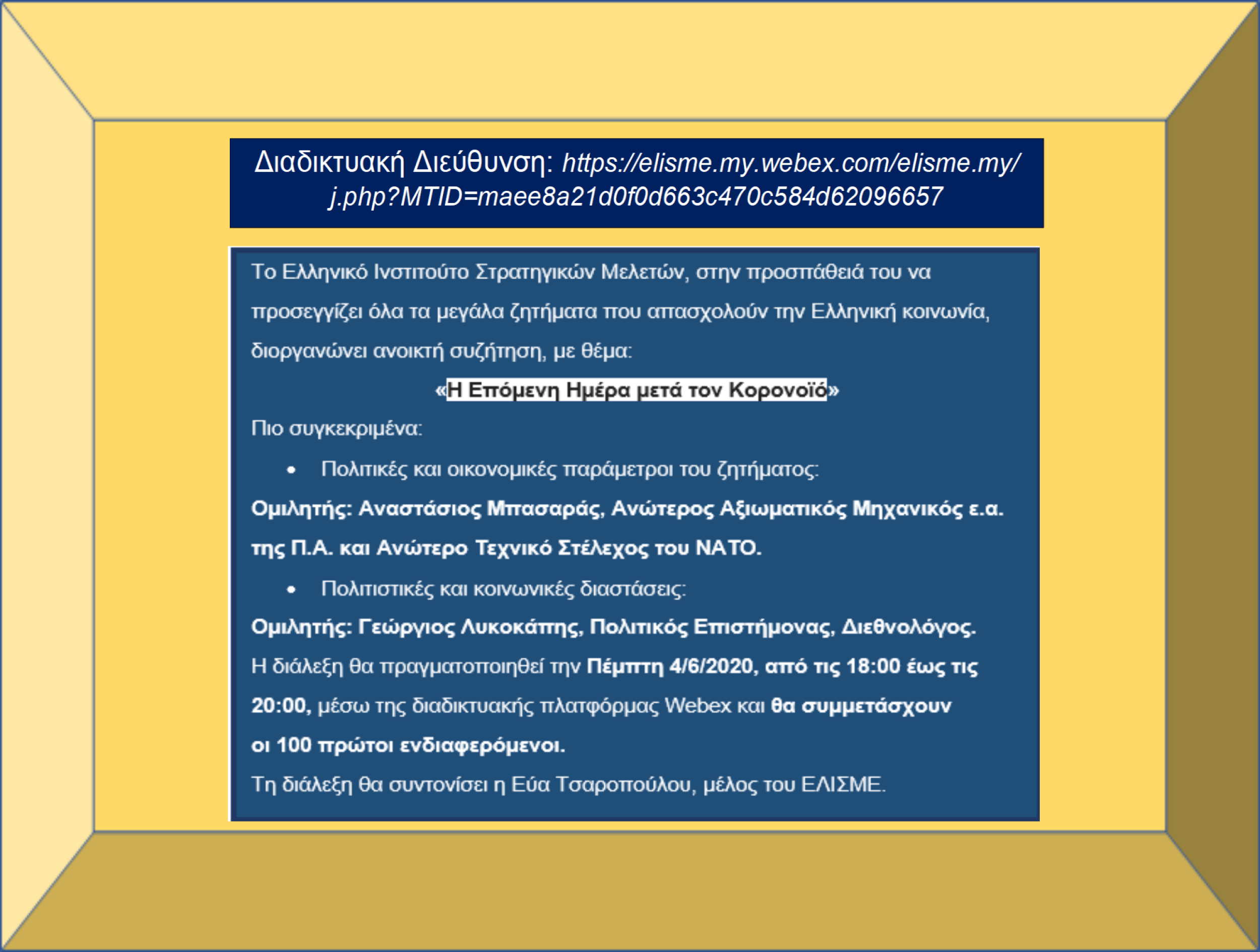 Ο κ. Λυκοκάπης θα μας αναλύσει το πολιτιστικό, ψυχολογικό και γεωστρατηγικό αποτύπωμα του COVID 19.