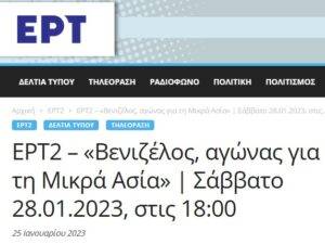 ΕΡΤ2-Βενιζέλος, αγώνας για τη Μικρά Ασία – Σάββατο 28.1.2023, στις 18:00μμ Super User 26 Ιανουαρίου 2023 Δ2.2 Παιδεία-Ιστορία-Πολιτισμός-Αθλητισμός-Περιβάλλον Πατήστε επάνω στην εικόνα για να δείτε περισσότερες πληροφορίες Κοινοποιήστε: Πατήστε για κοινοποίηση στο Facebook(Ανοίγει σε νέο παράθυρο) Facebook Click to share on X(Ανοίγει σε νέο παράθυρο) X Κλικ για κοινοποίηση στο LinkedIn(Ανοίγει σε νέο παράθυρο) LinkedIn Πατήστε για να μοιραστείτε στο WhatsApp(Ανοίγει σε νέο παράθυρο) WhatsApp Πατήστε για να μοιραστείτε στο Telegram(Ανοίγει σε νέο παράθυρο) Telegram Κλικ για εκτύπωση(Ανοίγει σε νέο παράθυρο) Εκτύπωση Κλικ για αποστολή ενός συνδέσμου μέσω email σε έναν/μία φίλο/η(Ανοίγει σε νέο παράθυρο) Email