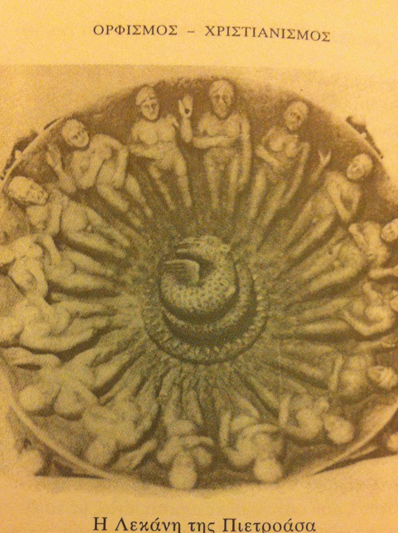 Η ορφική Λεκάνη και ο χριστιανικός Δίσκος. Πρόκειται για τη μία, μοναδική, μορφή του ίδιου αρχέτυπου, του ‘‘αιωνίου Ενός’’, που αναπαριστάται με πολύμορφους τρόπους.