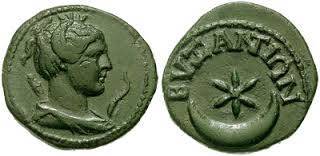 Ναι, πρόκειται για την αποικία, το Βυζάντιο, που ίδρυσαν οι Μεγαρείς, με επικεφαλής τον Βύζαντα, στο μυχό του Κεράτιου κόλπου, στη σημερινή Κωνσταντινούπολη, τον 7ον αιώνα π.χ. Όταν αργότερα ο Φίλιππος Β’ πολιόρκησε ανεπιτυχώςτην πόλη, στα πλαίσια των φιλονικιών του με την Αθήνα, η σωτηρία της αποδόθηκε σε θαύμα της Εκάτης. Τότε, εκτός των αγαλμάτων προς τιμήν της θεάς, κόπηκαν και νομίσματα με διάφορες παραστάσεις, σε μία από τις οποίες απεικονίζετο η ημισέληνος (ακριβέστερα, αμφίκυρτος σελήνη), η οποία συμβόλιζε την Εκάτη, με το άστρο, που συμβόλιζε την Αφροδίτη. Ήταν το ‘‘ηλιοσεληνάτο’’.