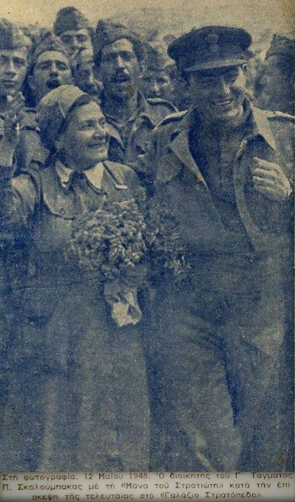 Στις 12 Μαΐου 1948 επισκέφθηκε τη Μακρόνησο η Βαρβάρα Θεοδωροπούλου-Λιβαδά, γνωστή ως «Μάνα του Στρατιώτη». Στο πλαίσιο της εθνικής της δράσεως η Βαρβάρα επισκέφθηκε το Γ’ Ε.Τ.Ο. όπου συναντήθηκε με Σκαπανείς τους οποίους επισκέφθηκε στις σκηνές τους, γύρισε όλα τα σημεία του Τάγματος, ενώ πήγε στο αναρρωτήριο και στάθηκε αρκετή ώρα κοντά στους ασθενείς. Την δεύτερη μέρα της παραμονής της στη Μακρόνησο, στις 13 Μαϊου, η Βαρβάρα Θεοδωροπούλου-Λιβαδά μίλησε στους Σκαπανείς, παρουσία του Διοικητή του Τάγματος, Λοχαγού Παναγιώτη Σκαλούμπακα. Τελειώνοντας την ομιλία της στους Σκαπανείς και λίγο πριν αναχωρήσει για την Αθήνα τους είπε: «Σε λίγο καιρό παιδιά μου θα ‘ρθω να σας βρω στα σύνορα.» Η Βαρβάρα Θεοδωροπούλου-Λιβαδά συνοψίζοντας τις εντυπώσεις της από την επίσκεψη της στο Γ’ Ε.Τ.Ο. Μακρονήσου γράφει: «Όσοι θέλουν να πεισθούν για την γελοιοποίηση του κομμουνισμού στην Πατρίδα μας ας επισκεφθούν την Μακρόνησο, που δεν είναι ο τόπος της μόνοσης και του πόνου, αλλά της χαράς και του Εθνικού Μεγαλείου. Το κάθε φανταράκι της Μακρονήσου -ένας Εθνικός βράχος. Μα του Τρίτου Τάγματος ένας Φωτεινός Φάρος» [14]. Μόλις επέστρεψε στην Αθήνα η Βαρβάρα Θεοδωροπούλου-Λιβαδά απέστειλε επιστολή στον Λοχαγό Παναγιώτη Σκαλούμπακα, Διοικητή του Γ’ Ε.Τ.Ο. στην οποία ανέφερε: «Αγαπητό μου παιδί, Στ’ αυτιά μου ακόμη βοούν οι ελληνικές φωνές και υποσχέσεις των αγαπημένων μου παιδιών, που ελπίζω να γίνουν πραγματικότητα. …Στην βεβαιότητα αυτή δακρύζω και θεωρώ τον εαυτό μου πολύ ευτυχισμένο που κατόρθωσα και έμεινα έστω και για λίγο και έδιωξα το βραχνά που μέδερνε, πως, μήπως ο εθνικός ζωντανός μας πλούτος χαθή… Είμαι πολύ χαρούμενη που γνώρισα το έργο σας και πιο περήφανη για τη στέψη του. Μπράβο σε Σας Μπράβο στους λαμπρούς συνεργάτες σας. Και το μεγαλύτερο Μπράβο κρατώ για τ’ αληθινά Ελληνόπουλα που κλείνη το 3ον Τάγμα για τη δύναμη της απολύτρωσης τους. Χίλια ευχαριστώ για τη στοργή Σας, για τη στοργή των παιδιών μου. Σαν επιστρέψω θα σας ξαναέλθω με κάποιο δώρο για το Τάγμα σας. Φιλώ όλους σας με λατρεία, η Μάνα σας, Βαρβάρα Θεοδωροπούλου-Λιβαδά» [15].