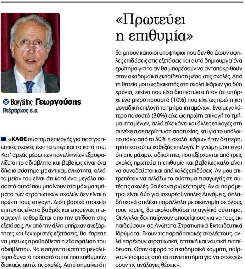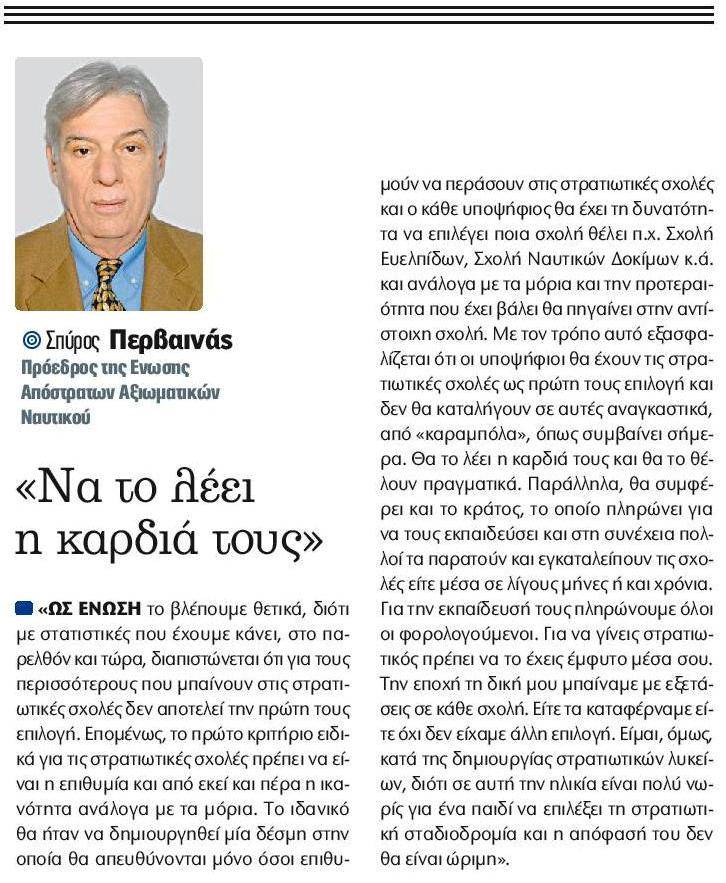 - Πάρις Καρβουνόπουλος, Δήμητρα Πανάνου – Συνέντευξη: Να αλλάξει τώρα το σύστημα εισαγωγής στις στρατιωτικές σχολές