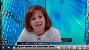 Συνέντευξη της Μαίρης Παπασχοινοπούλου, μέλους του ΕΛΙΣΜΕ, περί Ναυτιλιακής Εταιρικής Διπλωματίας στο maritimes.gr και RISE TV . Η καταληκτική της πρόταση αφορά το πελώριο διαπραγματευτικό χαρτί της Ελλάδας, το Πολεμικό μας Ναυτικό.