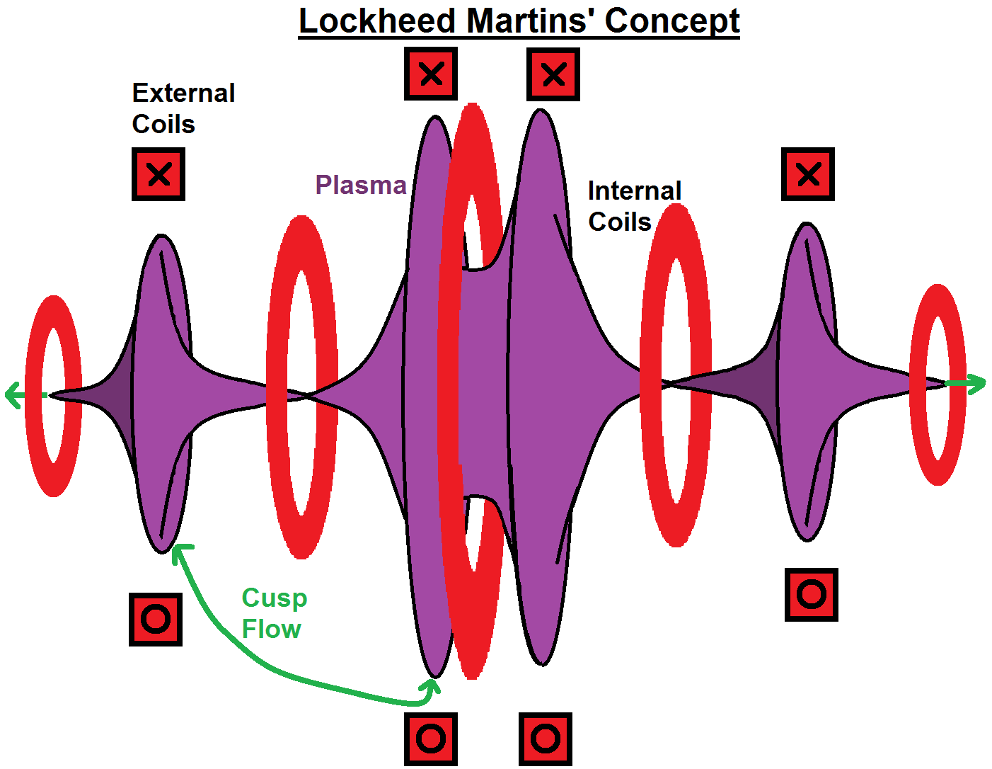A sketch of the plasma geometry and magnetic coils inside an early model of Lockheed Martins’ compact fusion reactor. This design has since been superseded with a model using only two main cusps. Image from McGuire, Thomas, The Lockheed Martin Compact Fusion Reactor, via Wikimedia CC BESA Center Perspectives Paper No. 909, July 29, […]